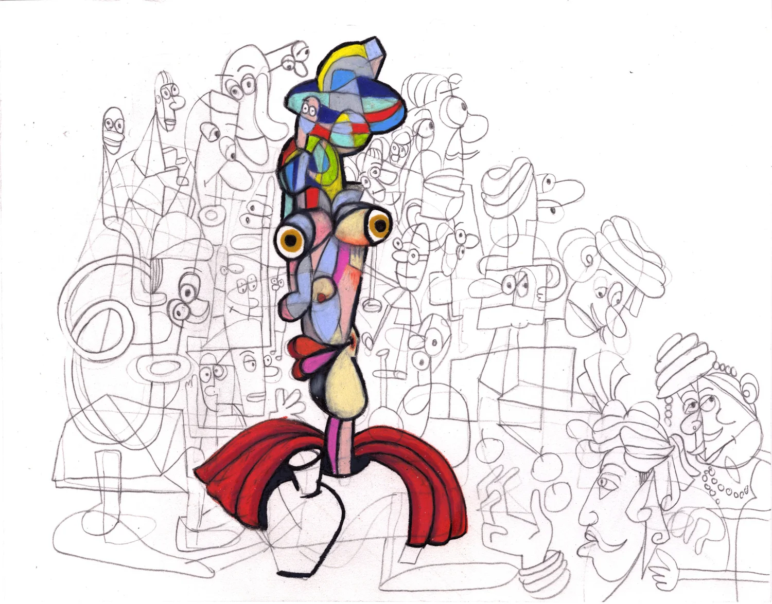 Geometrical Face and a Red Background  acrylic on canvas 40 x 40” 2017