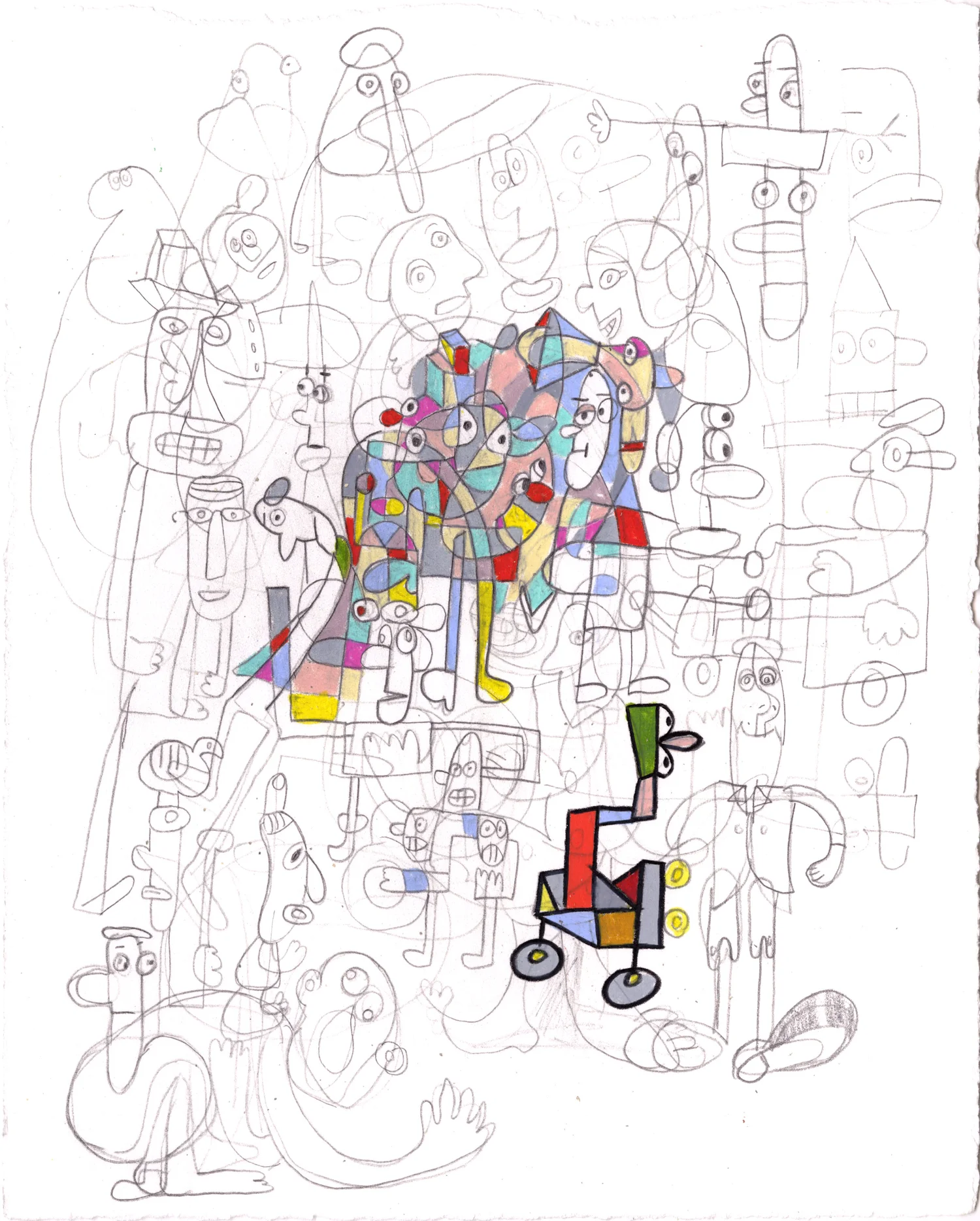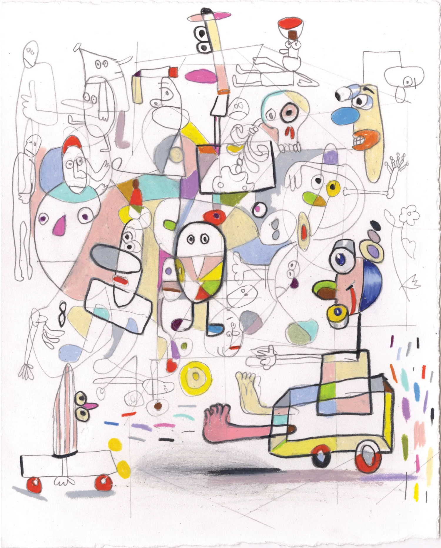 Geometric Face in a Geometric World  acrylic on canvas 40 x 80” 2017